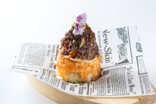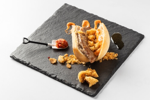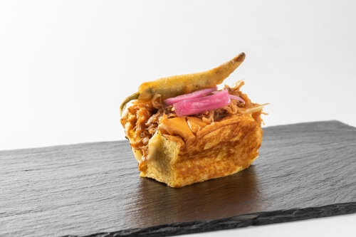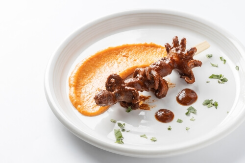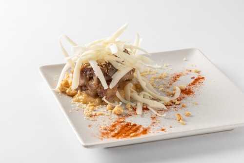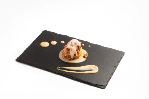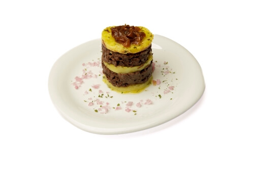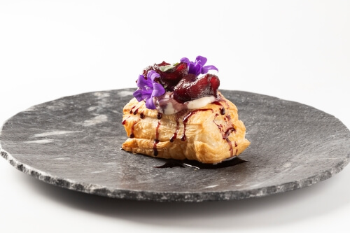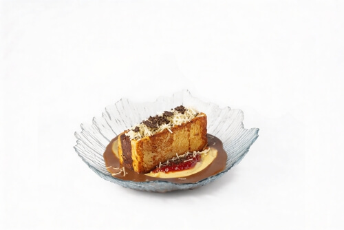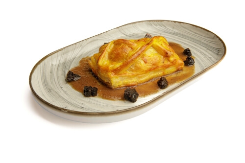 INGREDIENTES: Harina, azúcar, levadura, leche, huevo, mantequilla, vino tinto de Rioja, rabo de toro, cebolla, café, ajo, Peras de Rincón de Soto, puerro, patata, zanahoria, tomate, vainilla, ralladura de limón, ralladura de naranja, sal.